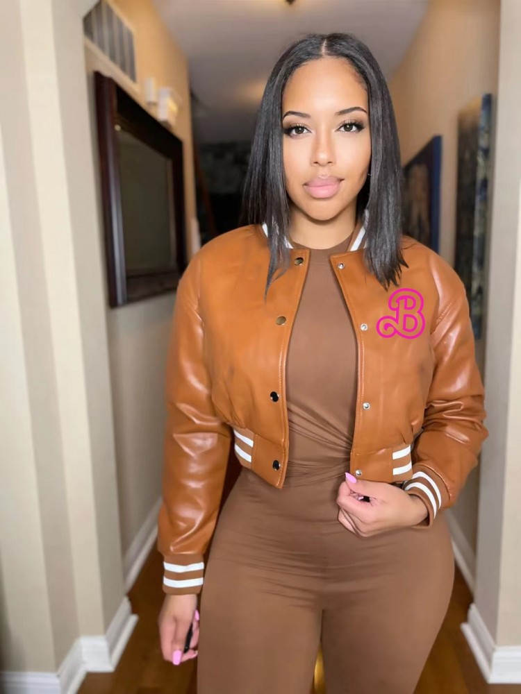 Fall Fashion Barbie Pink Leather Baseball Jacket
