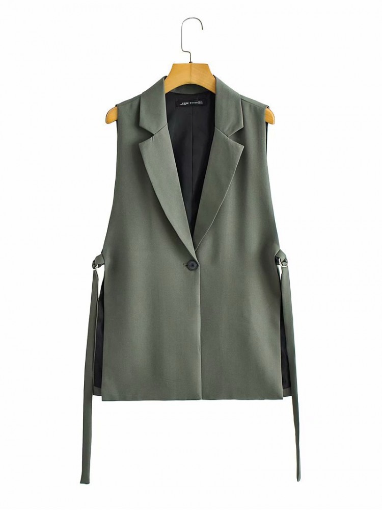 One Button Tailored Collar Sleeveless Jackets
