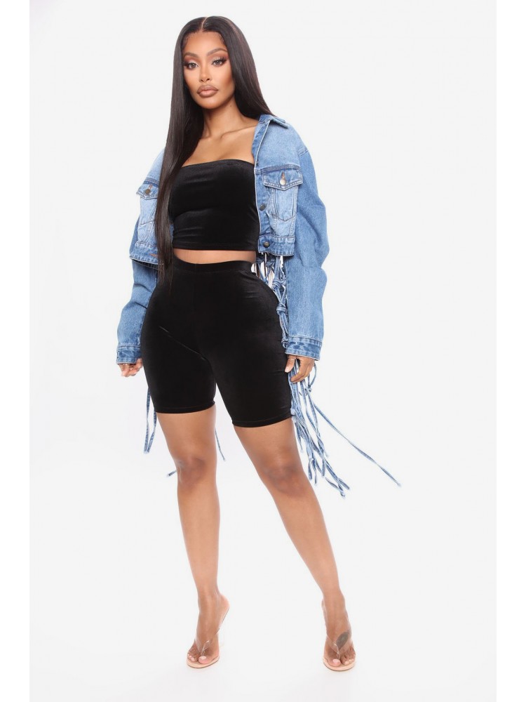Fall Fashion Denim Twist Tassels Jacket.